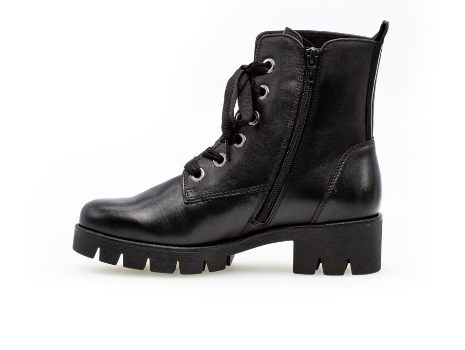 Gabor 71.711.27 Damstövlar I Svart Läder Ger En Klassisk Stridsstövelstil En Feminin Twist. Stövlarna Har En Dragkedja För Lättare På/av, Samt En Spets För En Personlig, Mer Exakt Passform. En Randig Banddetalj På Baksidan Av Stövlarna Ger Extra Stil. Stövlarna Har 5 Cm Klack Och En Tjock Sula. En Annan Funktion är Uttagbara Innersulor, Som är Idealiska Om Anpassade Ortoser Krävs. Här På Gabor Shoes Ireland Tycker Vi Att Dessa Stövlar Skulle Se Fantastiska Ut Tillsammans Med Ett Svart Skinny Jeans För Att Sätta En Modern Kant Till En Vardagslook. Ovanmaterial: Läder Foder Material: Textilsul Material: Konstgjorda Uttagbara Innersulor: Ja Bredd: Standard Hälhöjd: 5cm