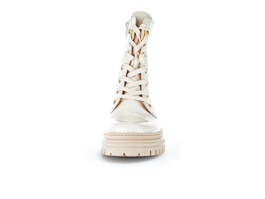 Gabor 91.721.91 Biker Stil Boot I Latte är Rätt Entrend. En Ovandel I Lackat Läder Kompletteras Vackert Med Guldöglor Och Krämsnören. En Dragkedja I Full Längd På Insidan Gör Att Du Enkelt Kan Ta Av Dig Medan Snören Gör Att Du Får En Mer Personlig Passform. Denna Känga är En Del Av Sortimentet Med Bästa Passform Och Erbjuder En Bredare Stegyta I Fotens Bollområde För Din Komfort När Du Går. En Uttagbar Innersula Gör Dessa Stövlar Idealiska För Dem Som Behöver Anpassade Ortoser. Blockhälen Ger 5cm Höjd. Här På Gabor Shoes Ireland Tycker Vi Att Gabor 91.721.91 Patentkängan I Latte Skulle Se Bra Ut Med Leggings Och En Tunika. Ovanmaterial: Läder Foder Material: Textilsul Material: Konstgjord Bredd: G Uttagbara Innersulor: Ja Hälhöjd: 5 Cm