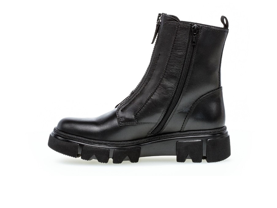 Gabor 91.733.27 Stöveln I Svart Läder Kommer Att Passa Den Här Säsongen. Den Släta Svarta Läderöverdelen Har En Dragkedja Framtill. En Modern Chunky Sula Lägger Verkligen Till Den övergripande Bikervibben I Denna Känga. Dragkedjan I Full Längd På Insidan Och En Dragbricka På Baksidan Gör Det Lätt Att Ta Av Sig. Denna Känga är En Del Av Sortimentet Med Bästa Passform Och Erbjuder En Bredare Stegyta I Fotens Bollområde, Vilket Möjliggör Mer Rörlighet För Tårna. Blockhälen Ger 5cm Höjd. Här På Gabor Shoes Ireland Tycker Vi Att Gabor 91.739.27 I Svart Skulle Se Bra Ut Med Leggings Och En Oversize Tröja. Ovanmaterial: Läder Foder Material: Textilsul Material: Konstgjord Bredd: F Uttagbara Innersulor: Ja Hälhöjd: 5 Cm